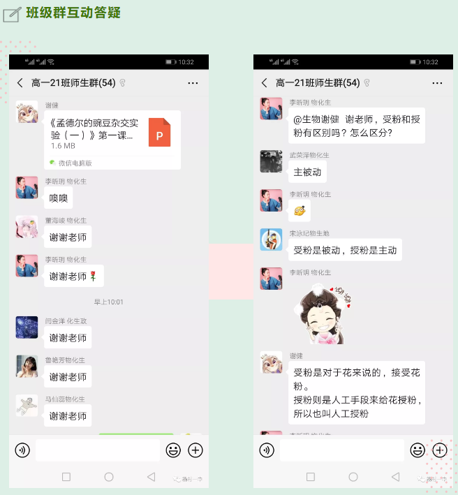 师者所以传道受业解惑也强大的网络使师生隔屏互动成为现实。在网络直播课结束后,班级群立刻启动答疑功能,学生个体存在的问题,通过微信、电话、QQ等方式和任课教师进行单独沟通交流,共性化的问题,教师在班级群通过语音或视频进行集中解答,使学生学习中的困难及时得到解决,班主任则随时监控直播进展和学生听课状态。