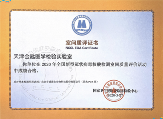 金匙医学检验实验室满分通过国家新型冠状病毒核酸检测室间质